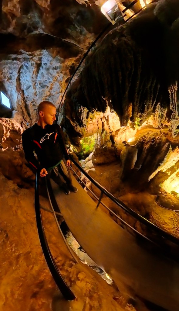 Dopo una nottata in tenda, abbiamo deciso di recarci presso le Grotte di San Beato, sopra il Lago di Thun in Svizzera. Un vasto sistema sotterraneo di circa un chilometro accessibile al pubblico. Al loro interno si trovano spettacolari stalattiti, stalagmiti e cascate, con una temperatura costante di 8-10 °C. Leggenda vuole che il monaco San Beato abbia scacciato un drago che abitava le grotte, oggi meta turistica con percorsi illuminati e visite guidate.