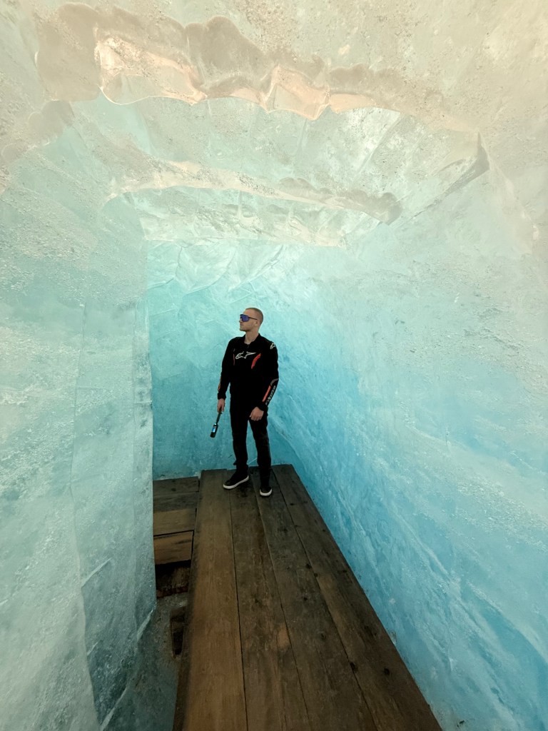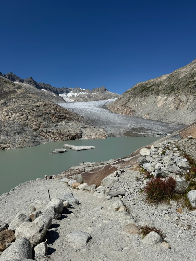 Il nostro viaggio prosegue verso il passo della Furka, uno dei più alti valichi alpini svizzeri (2431 m), collega Andermatt (Canton Uri) a Gletsch (Canton Vallese) ed è noto per panorami spettacolari e strade tortuose. L’Hotel Belvedere, costruito nel 1882 poco sotto il passo, è un simbolo iconico vicino al ghiacciaio del Rodano, diventato celebre anche grazie al film Goldfinger di James Bond. Una delle tappe più interessanti è Il ghiacciaio del Rodano, uno degli antichi ghiacciai alpini, facilmente raggiungibile dalla strada, ma oggi fortemente ridotto a causa dei cambiamenti climatici.